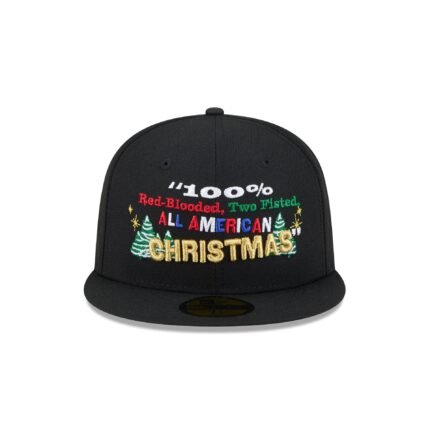 The A Christmas Story All American 59FIFTY Fitted Cap features an embroidered “100% Red Blooded, Two Fisted, All American Christmas”