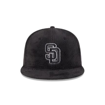 The Just Caps Static Logo San Diego Padres 59FIFTY Fitted Cap features a black and white embroidered Padres logo at