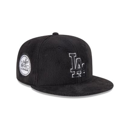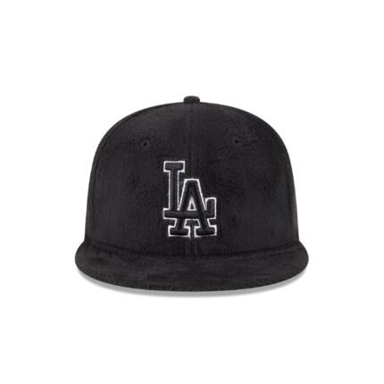 The Just Caps Static Logo Los Angeles Dodgers 59FIFTY Fitted Cap features a black and white embroidered Dodgers logo at