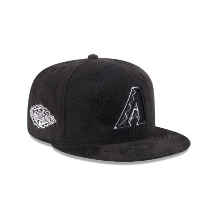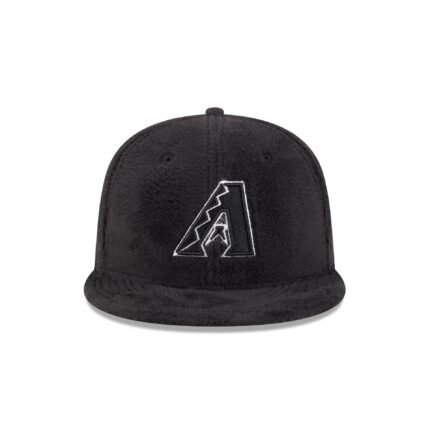 The Just Caps Static Logo Arizona Diamondbacks 59FIFTY Fitted Cap features a black and white embroidered Diamondbacks logo at the