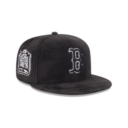 The Just Caps Static Logo Boston Red Sox 59FIFTY Fitted Cap features a black and white embroidered Red Sox logo