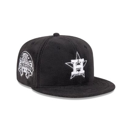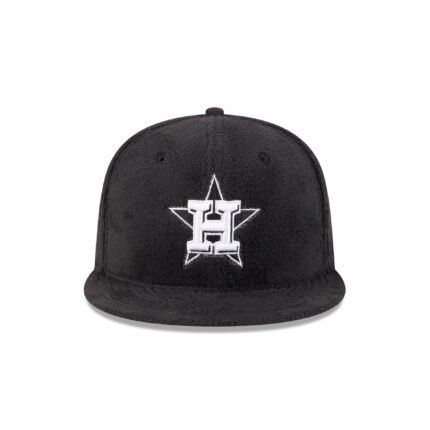 The Just Caps Static Logo Houston Astros 59FIFTY Fitted Cap features a black and white embroidered Astros logo at the