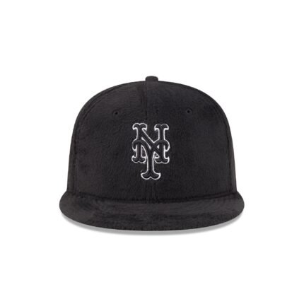 The Just Caps Static Logo New York Mets 59FIFTY Fitted Cap features a black and white embroidered Mets logo at