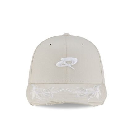 The Quadrant Ivory 9FIFTY Snapback features an embroidered Quadrant logo at the front panels with embroidered leaves at a frayed