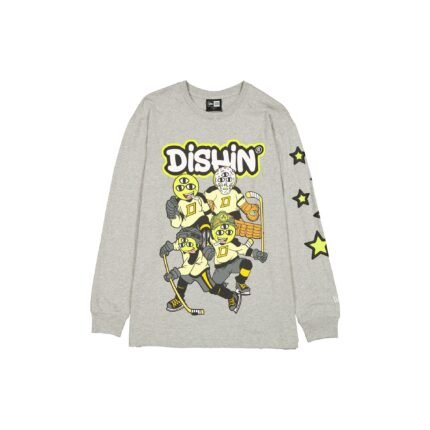 The DISHIN® Long Sleeve T-Shirt features a screen-printed DISHIN® player graphic at the front with star details at the left