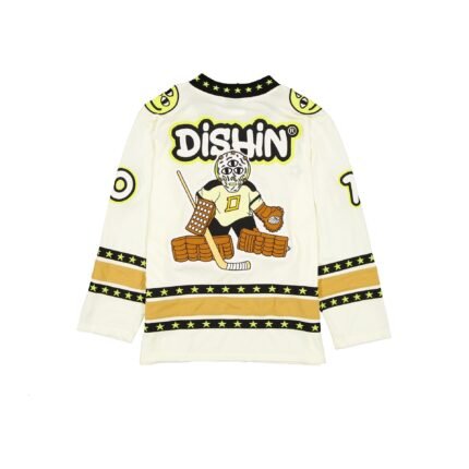 The DISHIN® Hockey Jersey a twill applique hockey mask and New Era Flag at the front with a DISHIN® goalie