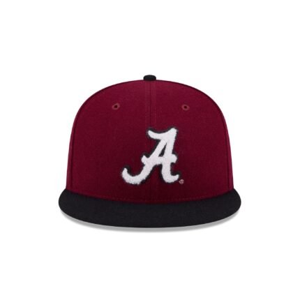 The Alabama Crimson Tide Melton Wool 59FIFTY Fitted Cap features a chenille applique Crimson Tide logo patch at the front