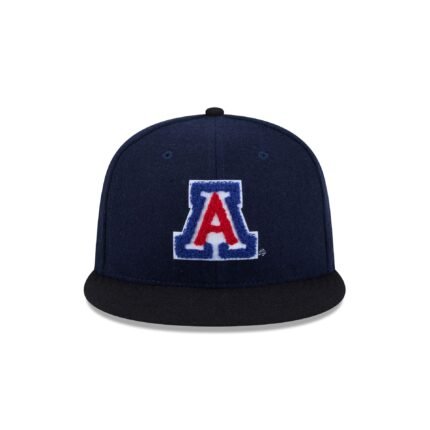The Arizona Wildcats Melton Wool 59FIFTY Fitted Cap features a chenille applique Wildcats logo patch at the front panels with