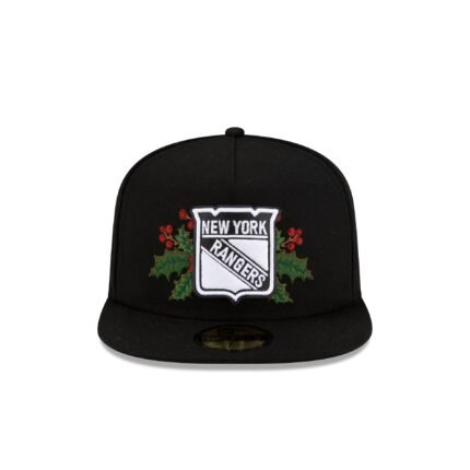 The New York Rangers Holly 59FIFTY A-Frame Fitted Cap features an embroidered Rangers black and white logo with holly at