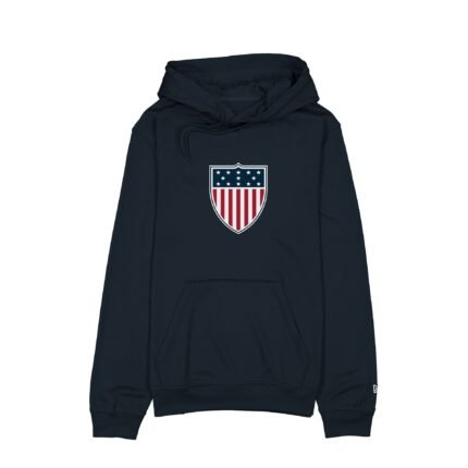 The Team USA Winter Olympics Shield Hoodie features a screen-printed USA shield at the front with a team wordmark at