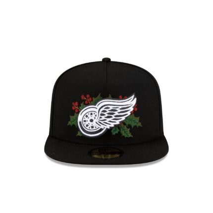 The Detroit Red Wings Holly 59FIFTY A-Frame Fitted Cap features an embroidered Red Wings black and white logo with holly