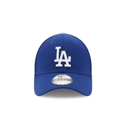The Los Angeles Dodgers 2025 World Series Champions Back-to-Back Circle Patch 39THIRTY Stretch Fit Cap features an embroidered Dodgers logo