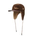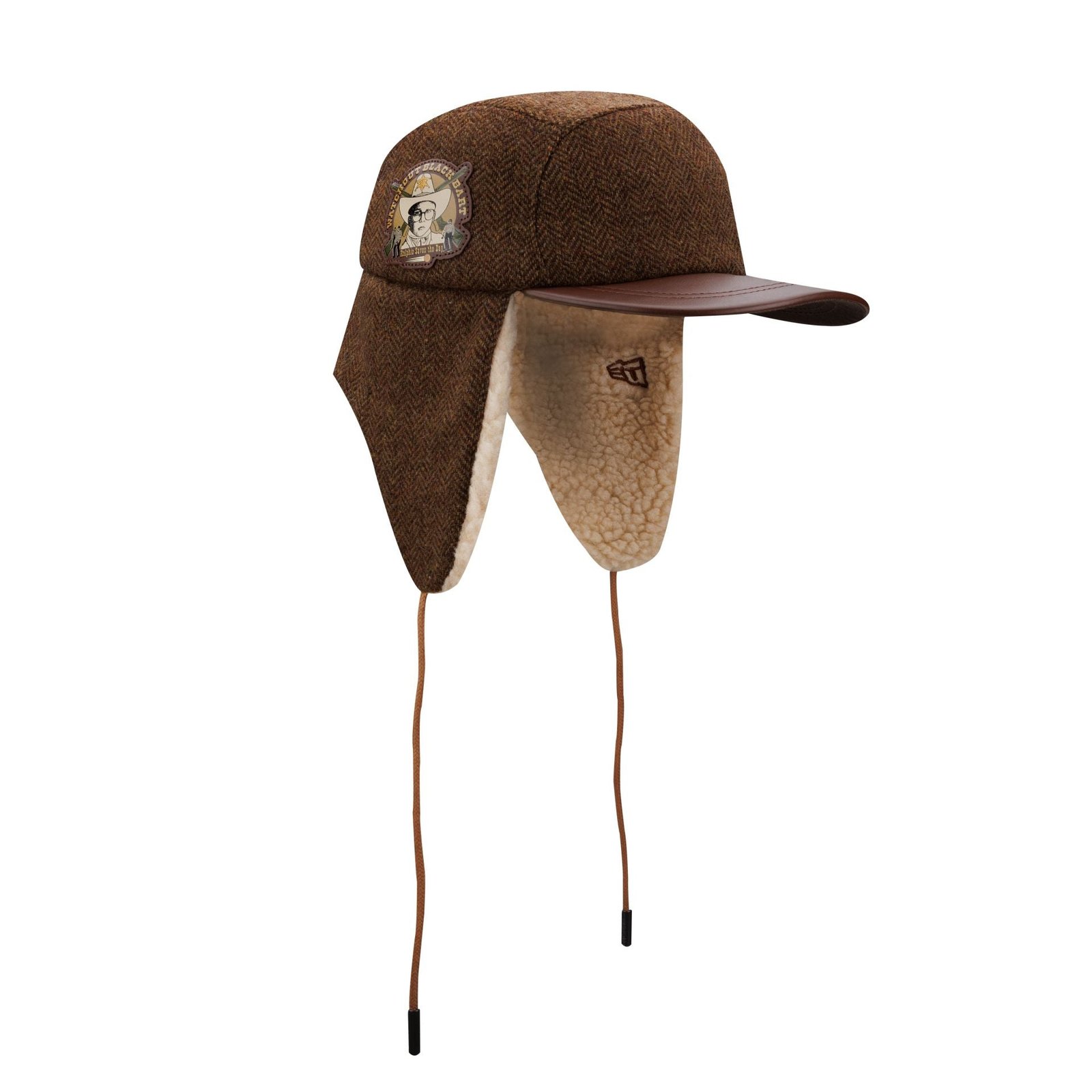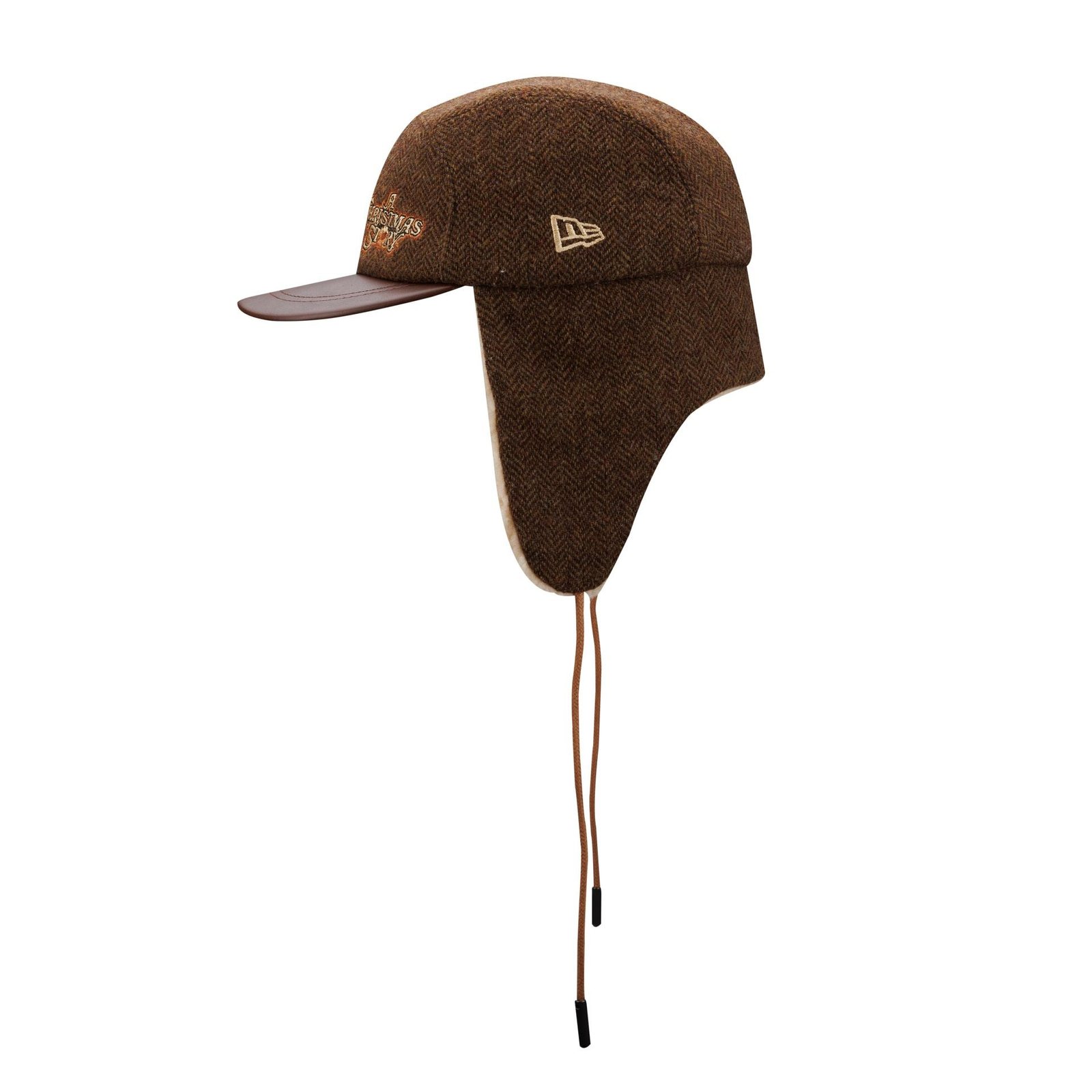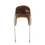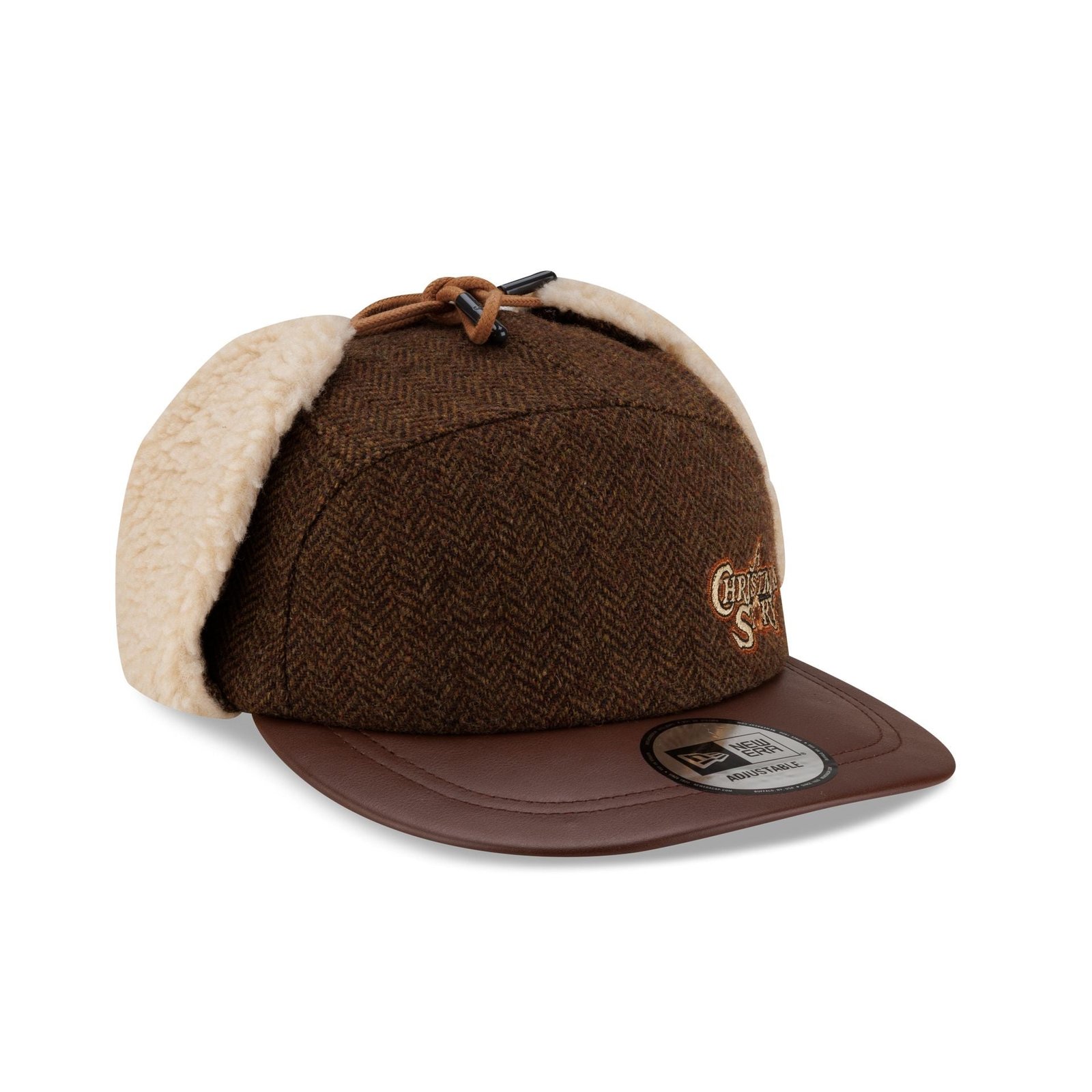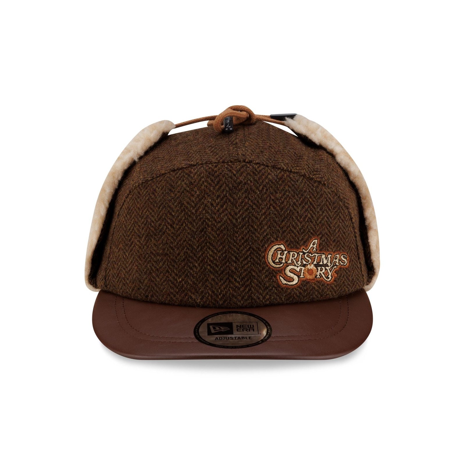 The A Christmas Story Dog Ear Camper Cap features an embroidered A Christmas Story logo at the front left panel. Additional details include a faux leather visor and a sherpa lining. Product runs small, size up for proper fit.