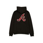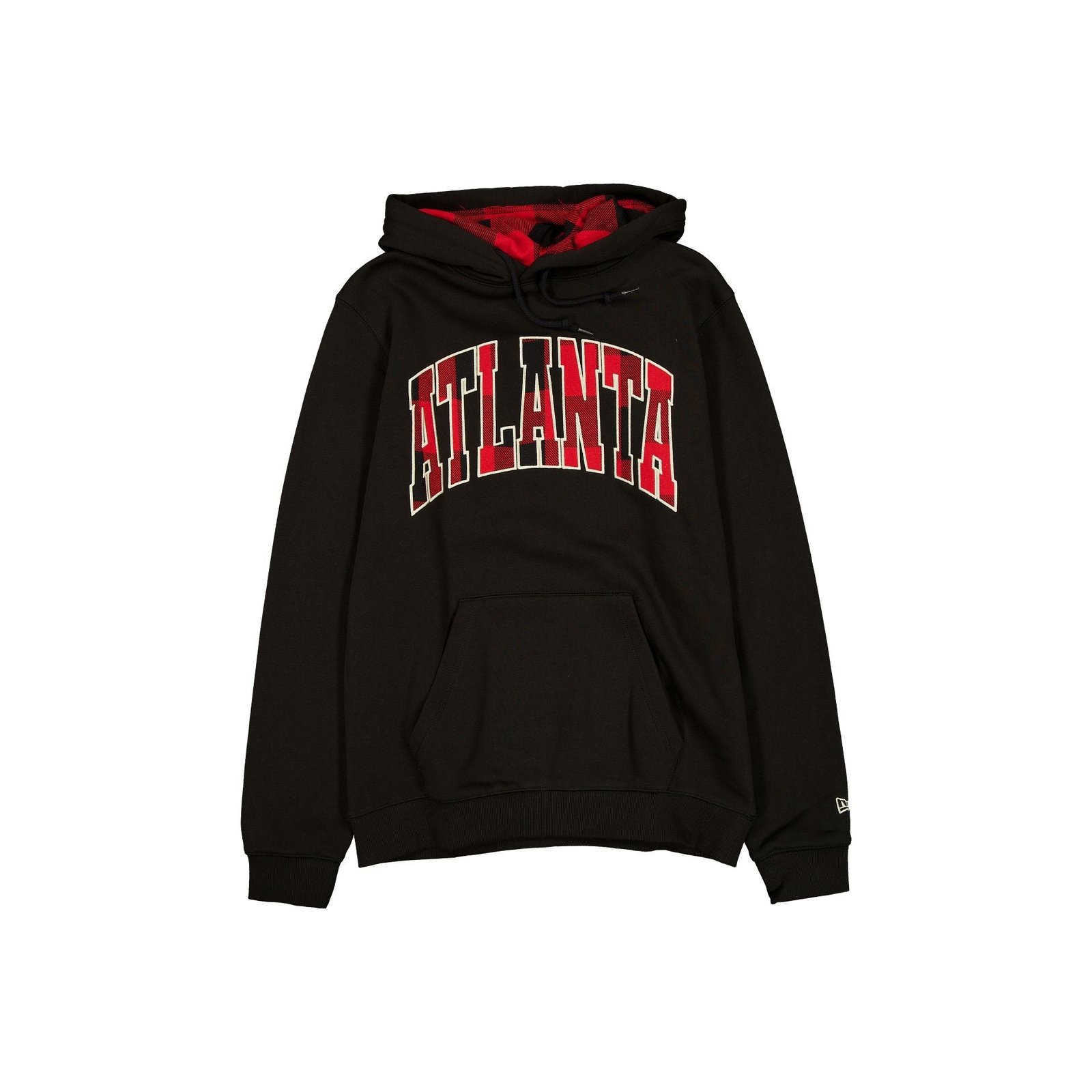 The Atlanta Braves Evergreen Check Hoodie features an embroidered applique Braves checkered wordmark at the front with a matching interior hood and logo at the rear. Additional details include kangaroo pockets and adjustable drawstrings at the hood.