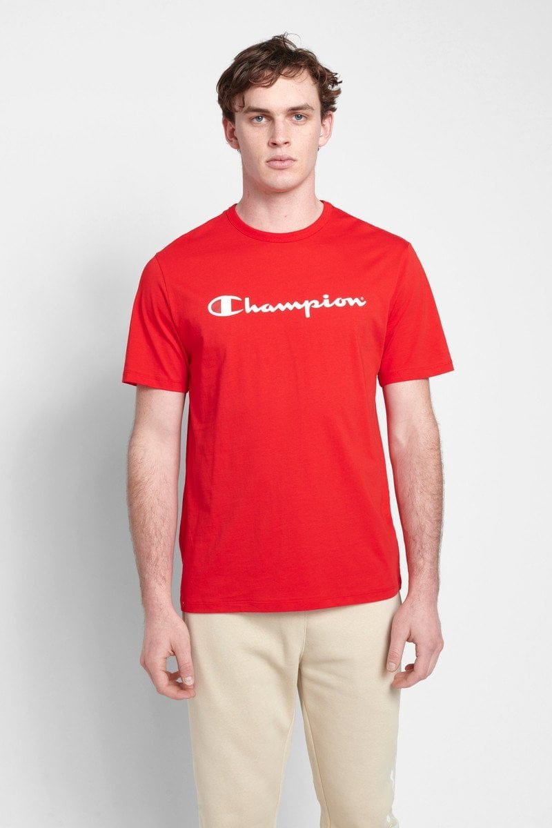 CHAMPION MEN’S SCRIPT SHORT SLEEVE RED TEE
