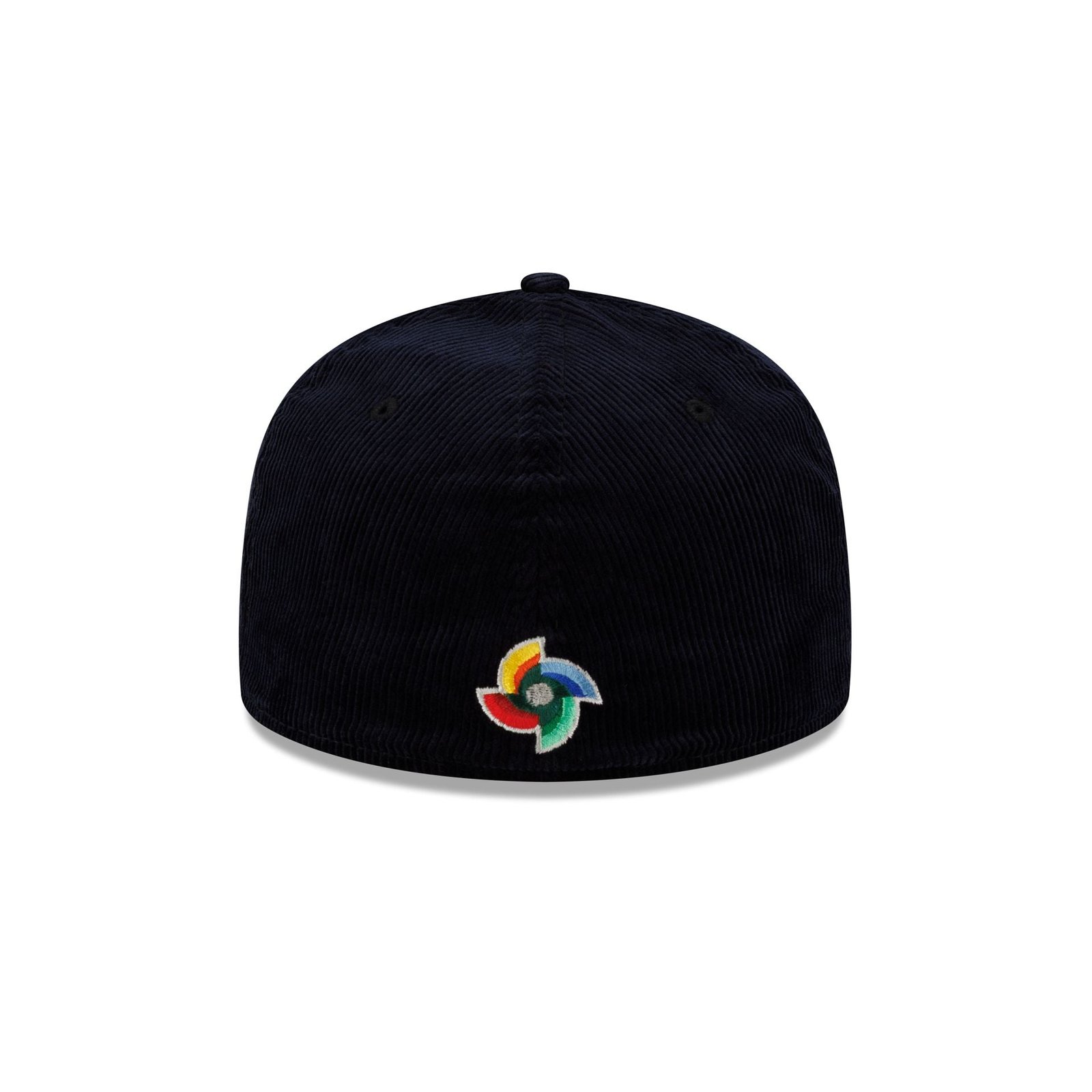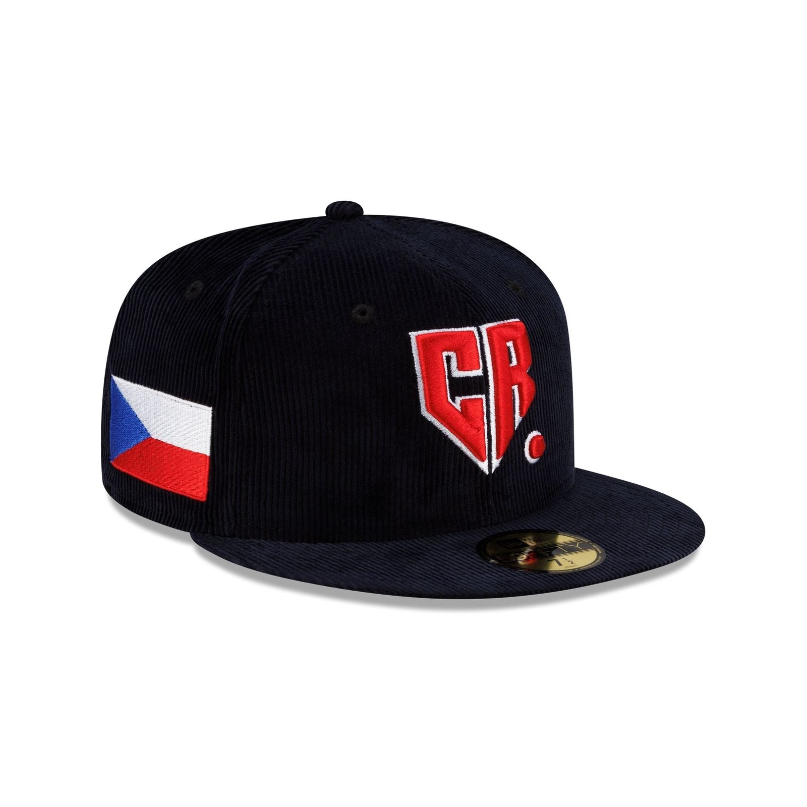 The Czech Republic 2025 World Baseball Classic 59FIFTY Fitted Cap features an embroidered Czech Republic logo at the front panels with their Flag at the right-wear side against a corduroy fabrication. Additional details include a World Baseball classic logo at the rear with a gray undervisor.