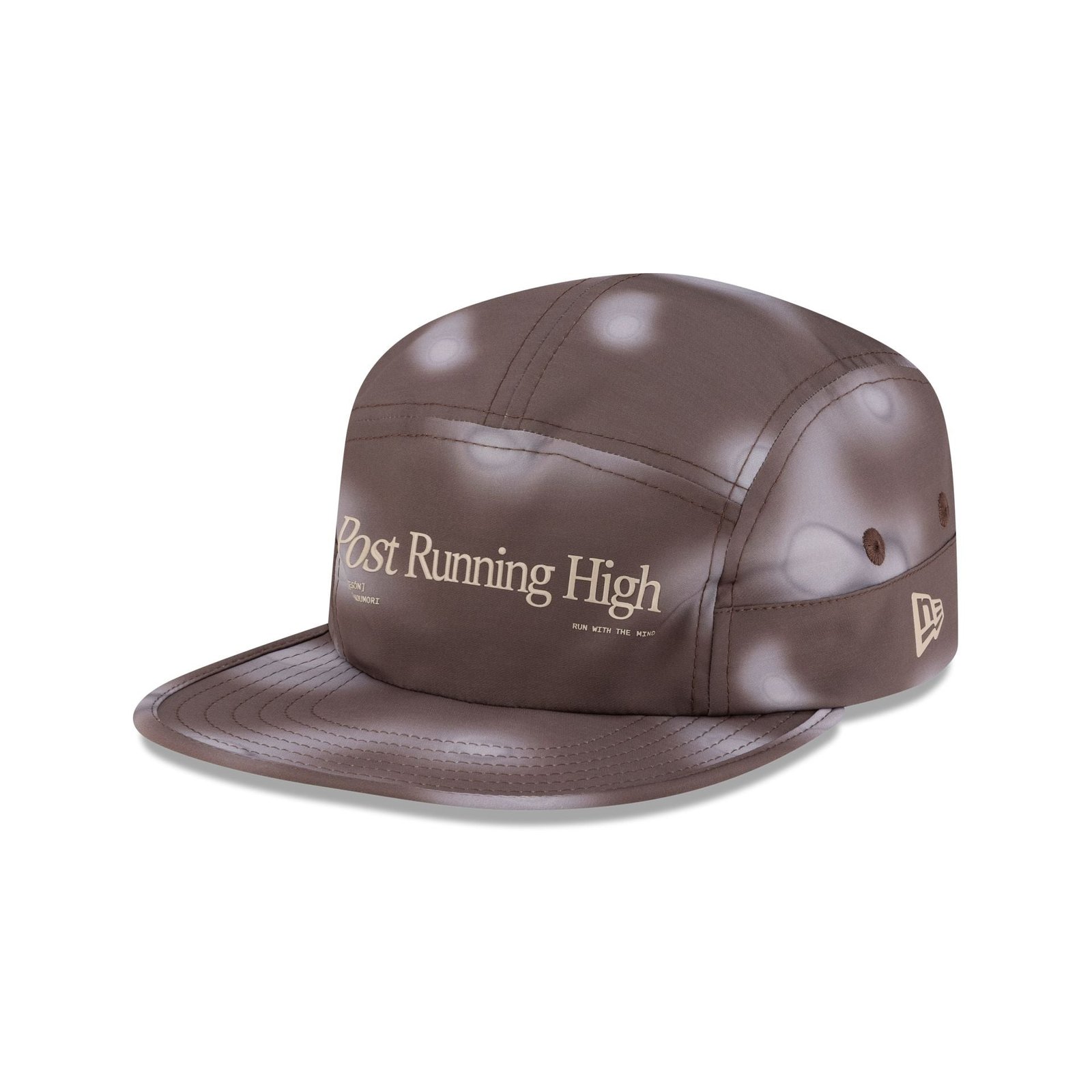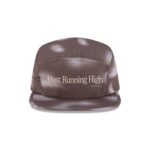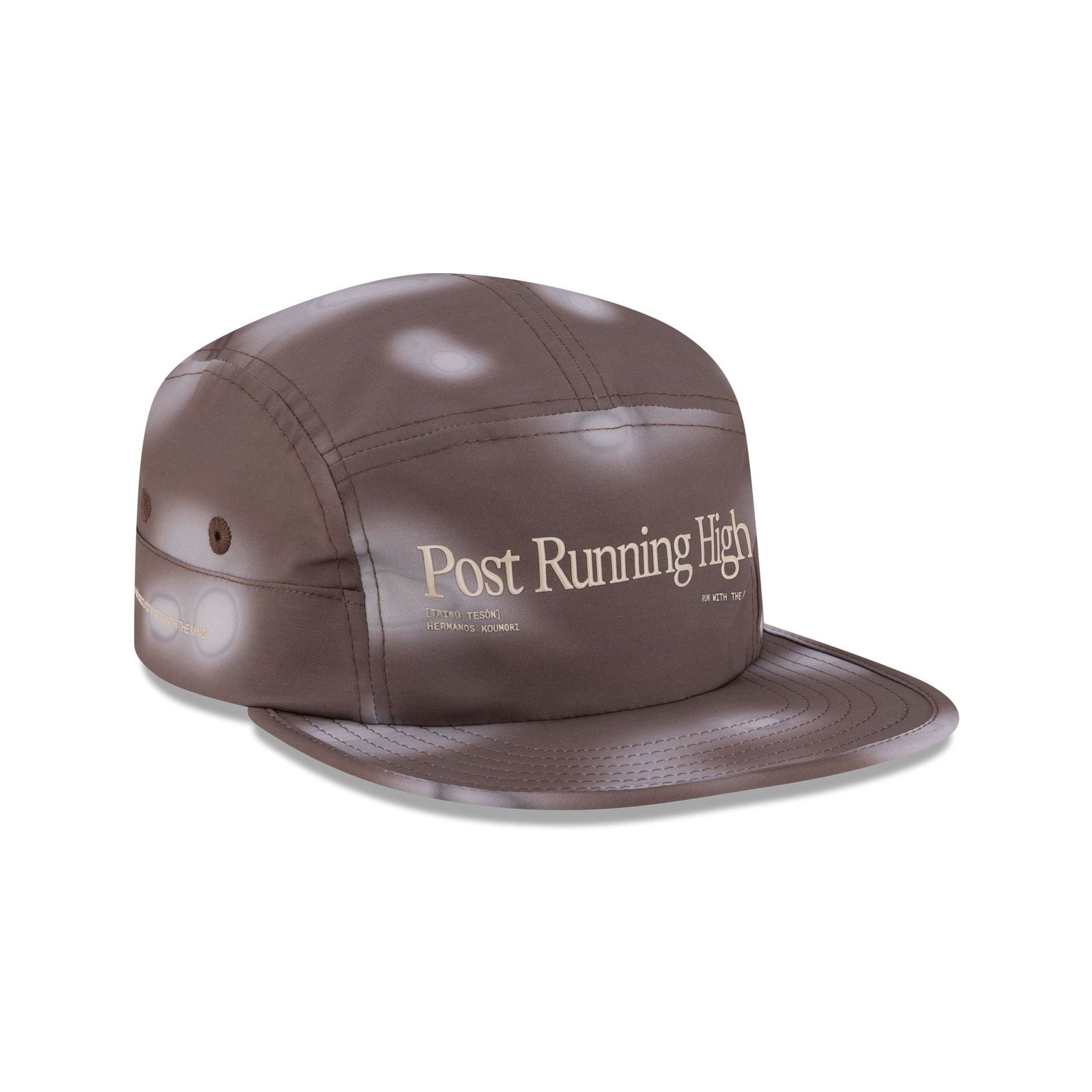 The Hermanos Koumori Post Running High Brown Camper Adjustable Cap features a screen-printed Hermanos Koumori Post Running High wordmark at the front panels. Additional details include a sublimation print throughout the cap and an adjustable hook-and-loop closure at the rear with a Hermanos Koumori wordmark to the right.