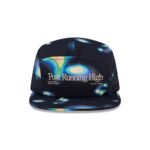 The Hermanos Koumori Post Running High Navy Camper Adjustable Cap features a screen-printed Hermanos Koumori Post Running High wordmark at the front panels. Additional details include a sublimation print throughout the cap and an adjustable hook-and-loop closure at the rear with a Hermanos Koumori wordmark to the right.