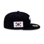 The Korea 2025 World Baseball Classic 59FIFTY Fitted Cap features an embroidered Korea logo at the front panels with their Flag at the right-wear side against a corduroy fabrication. Additional details include a World Baseball classic logo at the rear with a gray undervisor.