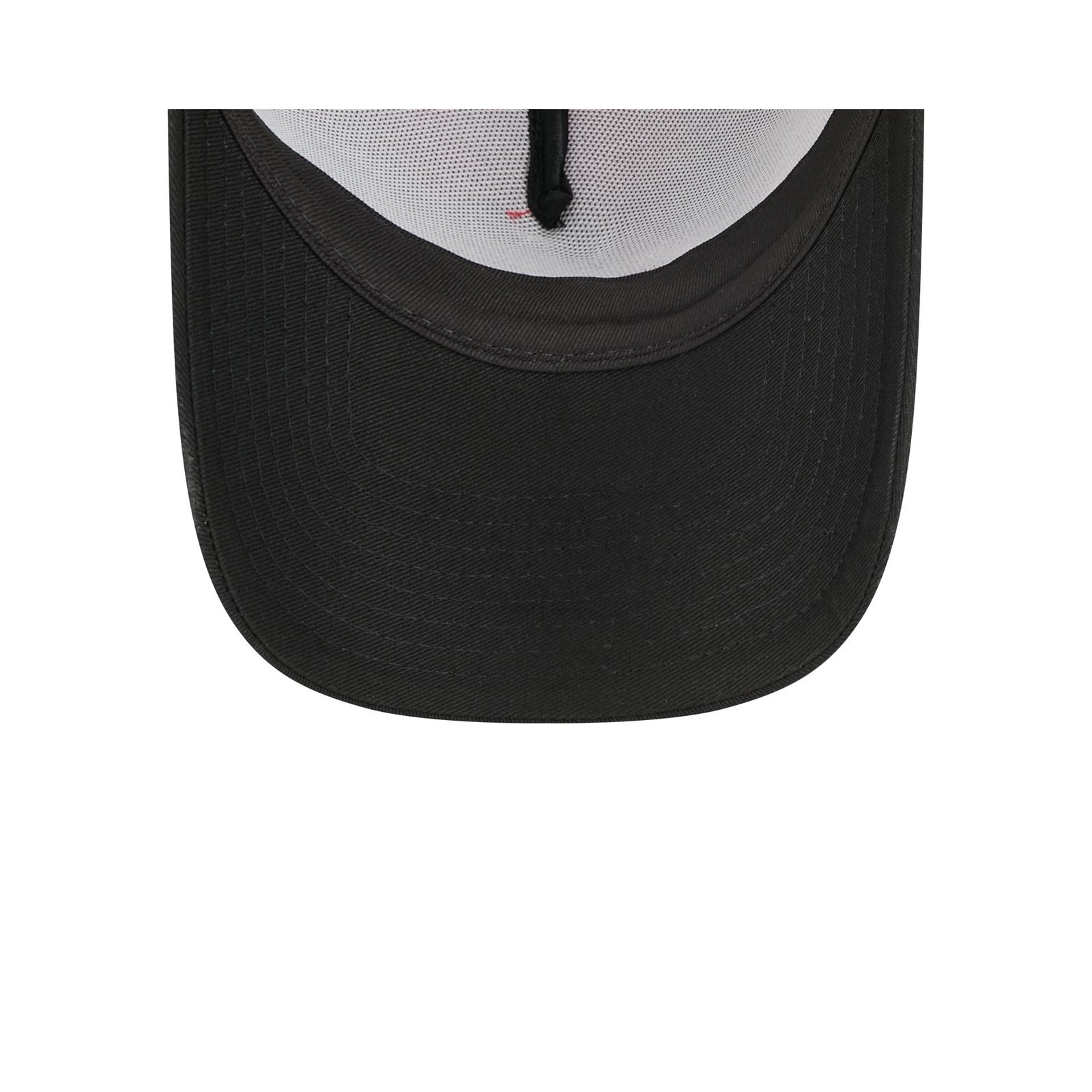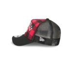 The Los Angeles Lakers Evergreen Check 9FORTY A-Frame Trucker features an embroidered Lakers white wordmark and logo at a checkered plaid front panel. Additional details include an adjustable snapback closure at a mesh rear.