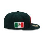 The Mexico Baseball 2025 World Baseball Classic 59FIFTY Fitted Cap features an embroidered Mexico Baseball logo at the front panels with their Flag at the right-wear side against a corduroy fabrication. Additional details include a World Baseball classic logo at the rear with a gray undervisor.