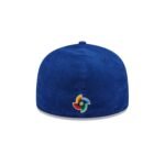 The Nicaragua 2025 World Baseball Classic 59FIFTY Fitted Cap features an embroidered Nicaragua logo at the front panels with their Flag at the right-wear side against a corduroy fabrication. Additional details include a World Baseball classic logo at the rear with a gray undervisor.