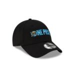 The One Piece Black 9FORTY Adjustable Cap features an embroidered One Piece logo at the front panels with a One Piece logo at the right-wear side and character items throughout. Additional details include an adjustable D-Ring closure at the rear.