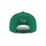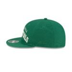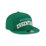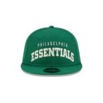 The Philadelphia Eagles Fear of God Essentials Retro Crown 9FIFTY Snapback features an embroidered Eagles Essentials wordmark at the front panels with a New Era script at the left-wear side and a team logo above an adjustable snapback closure at the rear.
