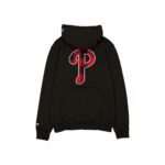 The Philadelphia Phillies Evergreen Check Hoodie features an embroidered applique Phillies checkered wordmark at the front with a matching interior hood and logo at the rear. Additional details include kangaroo pockets and adjustable drawstrings at the hood.