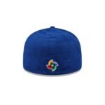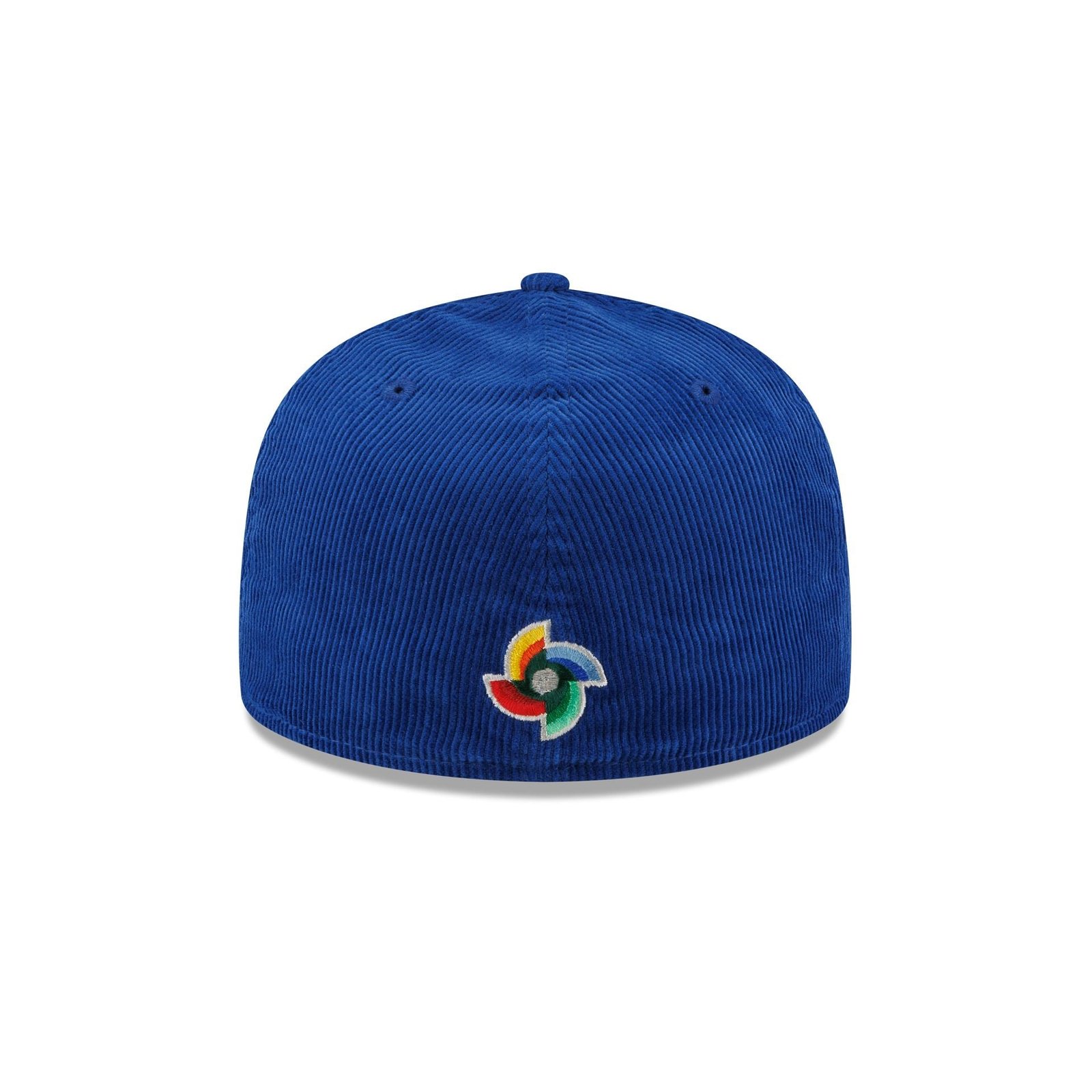 The Puerto Rico 2025 World Baseball Classic 59FIFTY Fitted Cap features an embroidered Puerto Rico logo at the front panels with their Flag at the right-wear side against a corduroy fabrication. Additional details include a World Baseball classic logo at the rear with a gray undervisor.