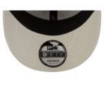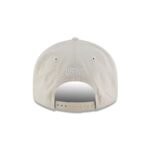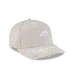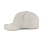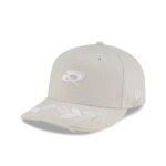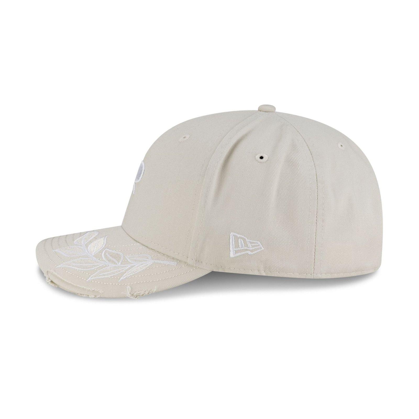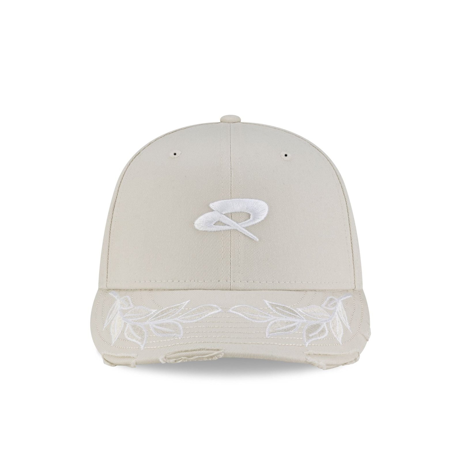 The Quadrant Ivory 9FIFTY Snapback features an embroidered Quadrant logo at the front panels with embroidered leaves at a frayed edged visor. Additional details include a distorted HD print Quadrant wordmark at the right-wear side and a QDRNT wordmark above an adjustable snapback closure at the rear.