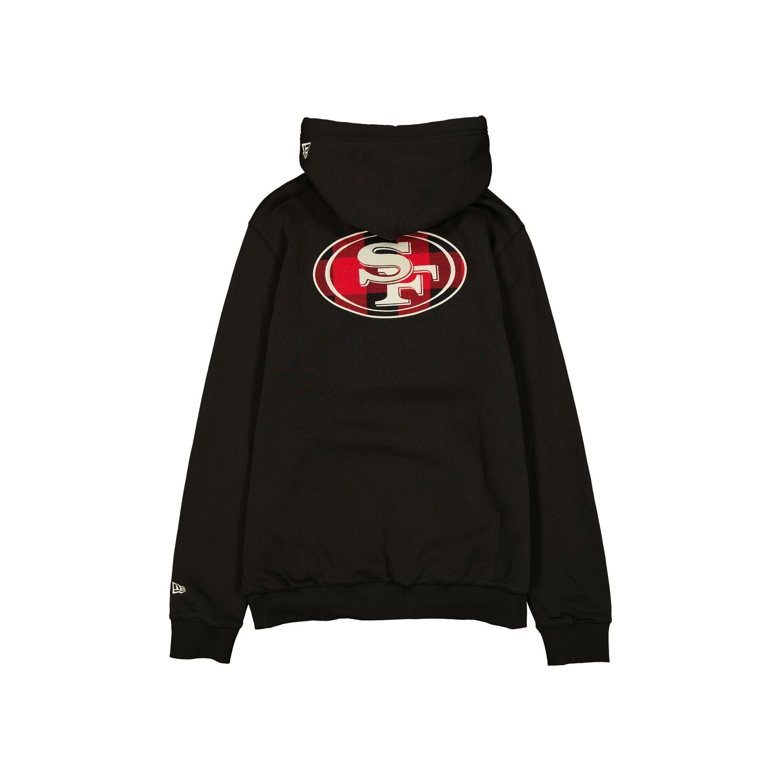The San Francisco 49ers Evergreen Check Hoodie features an embroidered applique 49ers checkered wordmark at the front with a matching interior hood and logo at the rear. Additional details include kangaroo pockets and adjustable drawstrings at the hood.