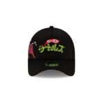The Teenage Mutant Ninja Turtles Black 9FORTY A-Frame Snapback features an embroidered Teenage Mutant Ninja Turtles graphic in Japanese at the front panels. Additional details show Super Shredder and Splinter facing-off at the right-wear side. The cap has an adjustable snapback closure at the rear.