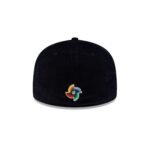The USA 2025 World Baseball Classic 59FIFTY Fitted Cap features an embroidered USA logo at the front panels with their Flag at the right-wear side against a corduroy fabrication. Additional details include a World Baseball classic logo at the rear with a gray undervisor.